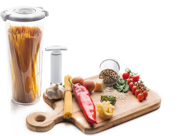 Set of Smaller Rectangular Vacuum Containers is intended for vacuum storing snacks, leftover meals, baked goods, and sliced fruit and vegetables. We recommend vacuum containers with capacities of 0.5 l, 0.8 l, 1.4 l, and 2l with included manual pump as your vacuum storing starter set.