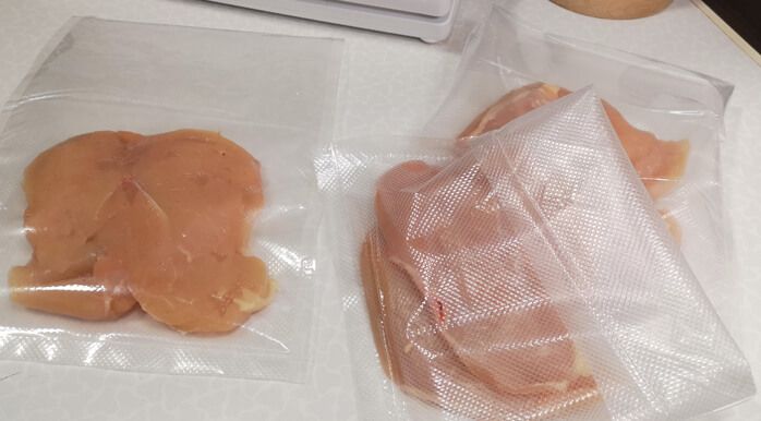 The third way of ensuring safe vacuum packing of the moist foods is by using additional PE food bag inside the vacuum bag. This way you will also keep the vacuum bag clean and use it multiple times.