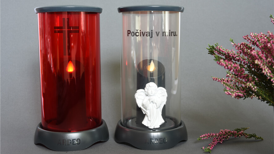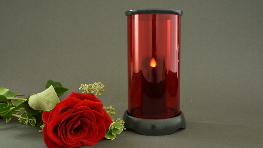 Ardeo candle will work for many years. You just have to replace the batteries every two to three months (depending on the surrounding temperatures). That is a much smarter choice than adding waste grave candles to the garbage pile.