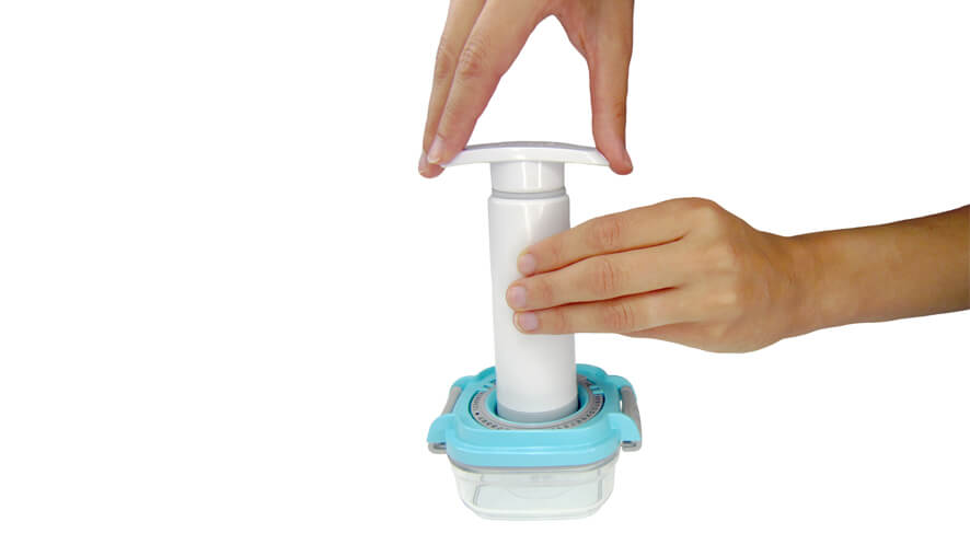 - Use the manual vacuum pump to vacuum the air from vacuum containers that are storing your fruits and vegetables, flour, coffee, herbs, finished meals or other foodstuffs whose freshness and shelf-life you want to extend and whose nutritional value and aroma you want to preserve. Vacuum pacing also prevents unpleasant odours from spreading in your refrigerator and kitchen.