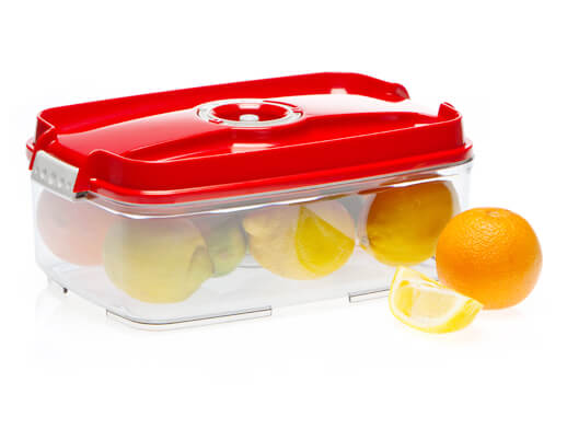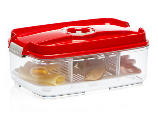 - The 0.8-litre rectangular vacuum container is suitable for storing smaller pieces of cheese and cured sausage, candy and biscuits, and leftover salads or sliced fruits for one person. The stored foods will be safe from pests such as pantry moths and ants, and will stay fresh for up to four times longer.