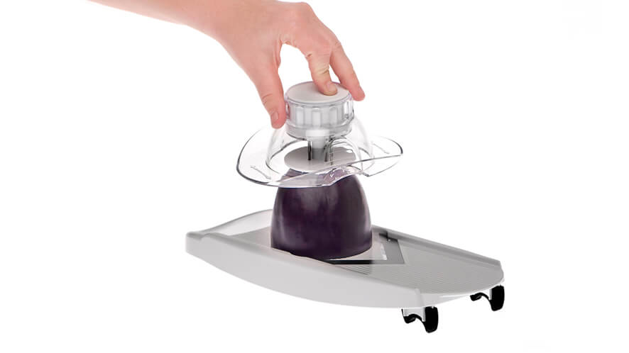 The vegetable slicer, which is often called the mandoline slicer, is the right choice for food items that need to be cut very thinly and precisely – cabbage and cucumbers for salads, fruits and vegetables for decoration. It is also perfect for when you have to slice larger quantities of food items at a time for example when pickling beet root or cabbage, or slicing potatoes to make crisps, baked potato slices, or potato salad.
