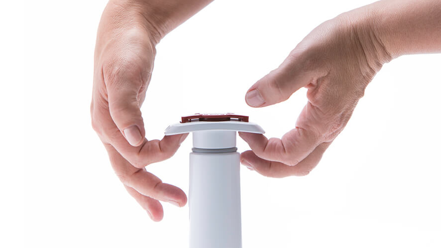 To vacuum seal opened pickling jars, you need to pierce the aluminium lid and insert the red Universal Vacuum Pin in the hole. Pierce the lid with the included attachment located in the handle of the Vacuum Pump. Store Universal Vacuum Pins in the intended space inside the special edition Vacuum Pump. This way you’ll always have them ready and won’t lose them. The vacuum packing procedure is the same as with vacuum sealing bottles.